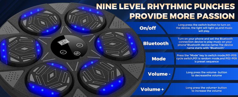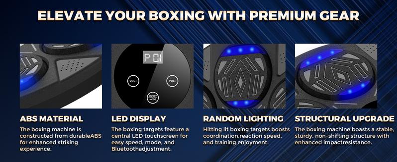 The Boxing Punching Music Machine is designed to elevate your training experience by combining rhythm, motion, and performance tracking. Simply power on the device using the USB cable or battery option, then connect your favorite music via Bluetooth. As the beats play, the machine activates light prompts that guide your punches in sync with the rhythm, helping improve timing, speed, and cardio endurance. Built-in sensors track punch count, speed, and accuracy, allowing users to monitor progress and adjust intensity through a companion app or display panel.