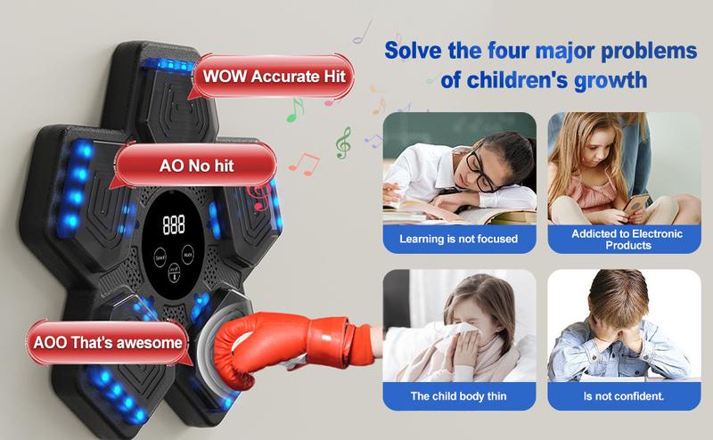 Enhance your fitness routine with the Smart Music Boxing Machine, designed for home gym workouts. This innovative boxing trainer is USB-powered, ensuring it operates efficiently without the need for frequent recharges.